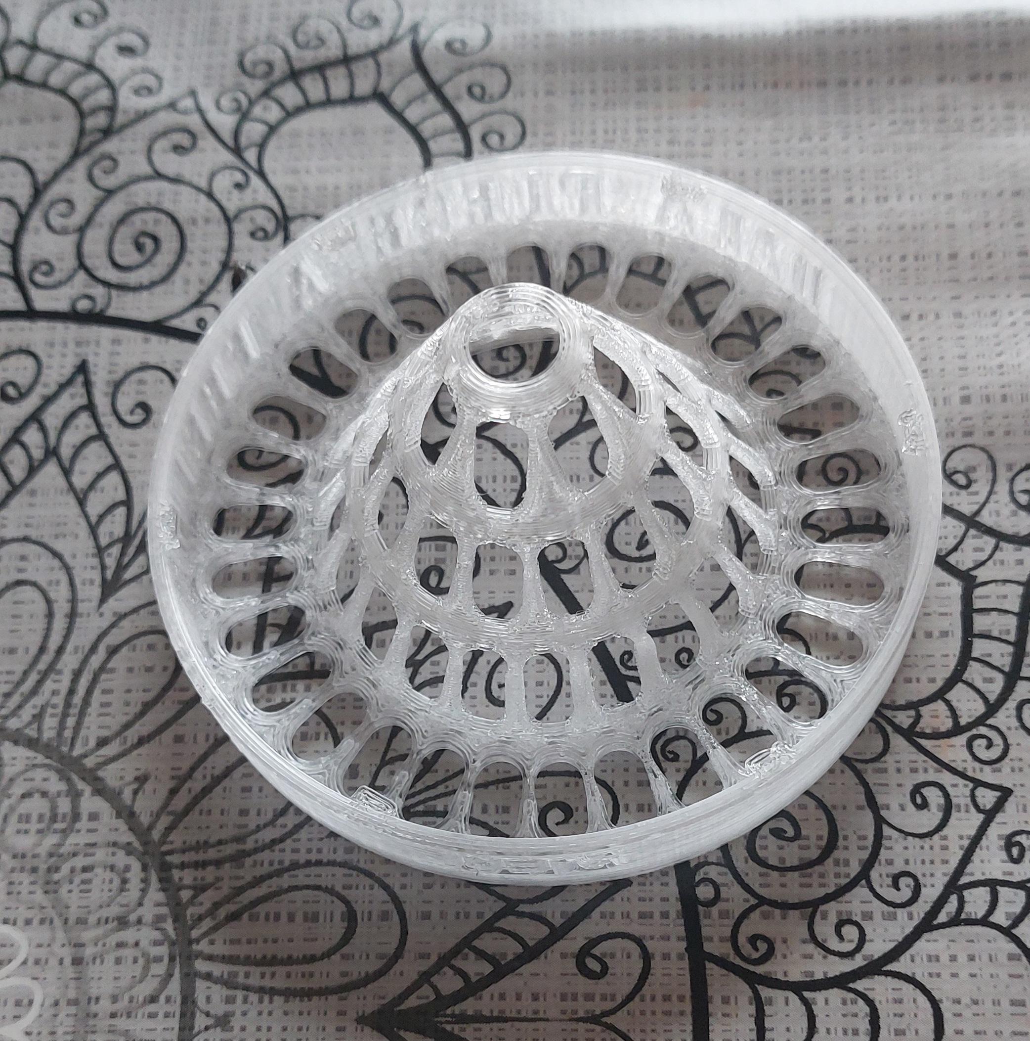 Ce piège à frelon est imprimé en 3D en PETG translucide.